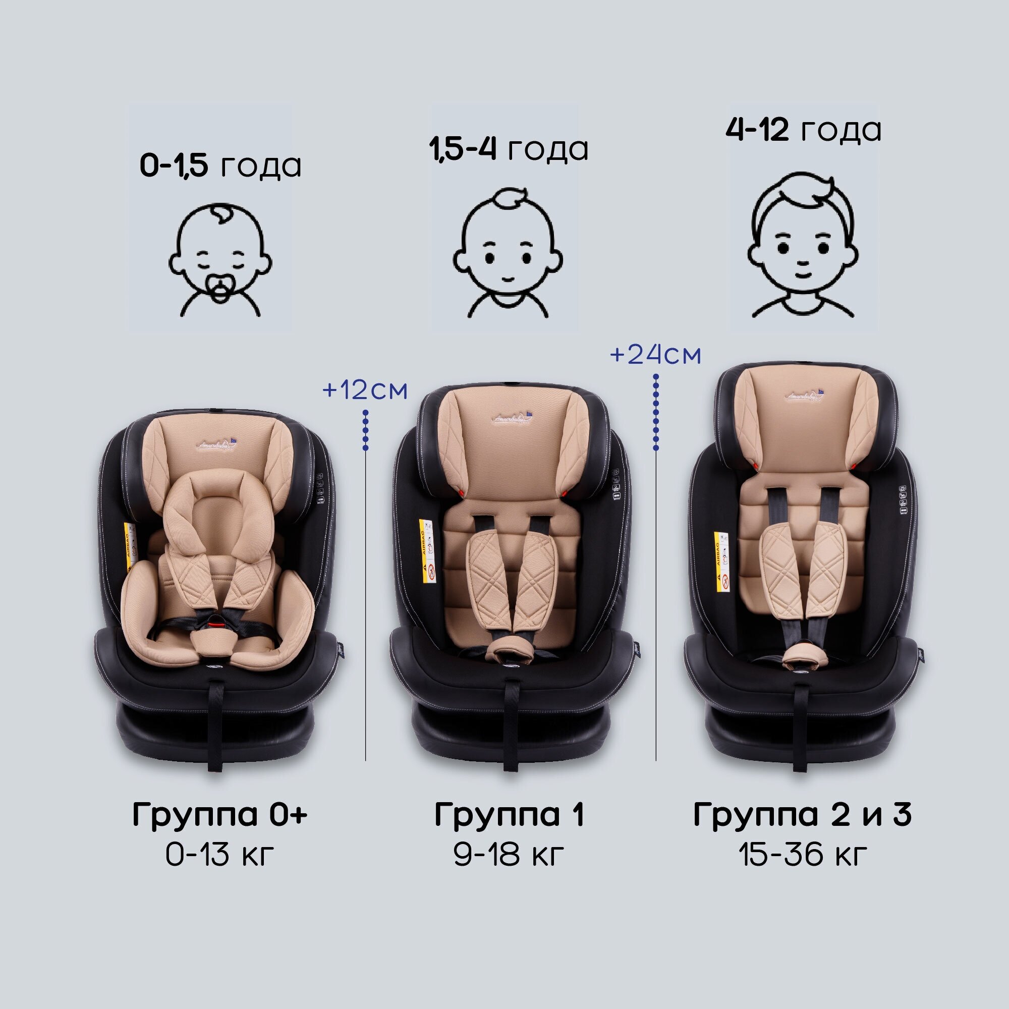 Автокресло детское AMAROBABY ST-3,Isofix класс D, группа 0+/1/2/3, (бежевый)