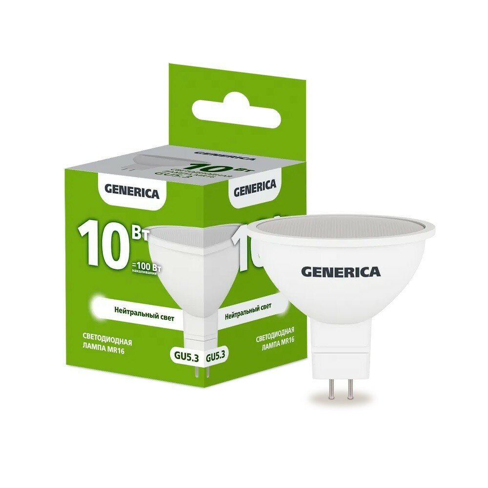 Лампочка светодиодная GENERICA 10Вт=100Вт 4000К нейтральный свет MR16 GU5.3 софит (комплект из 10 шт.)