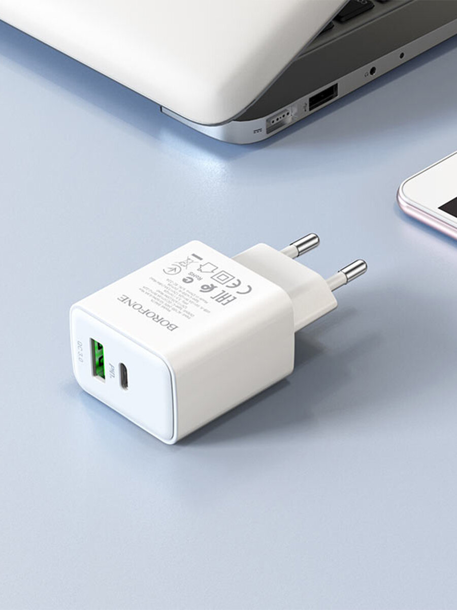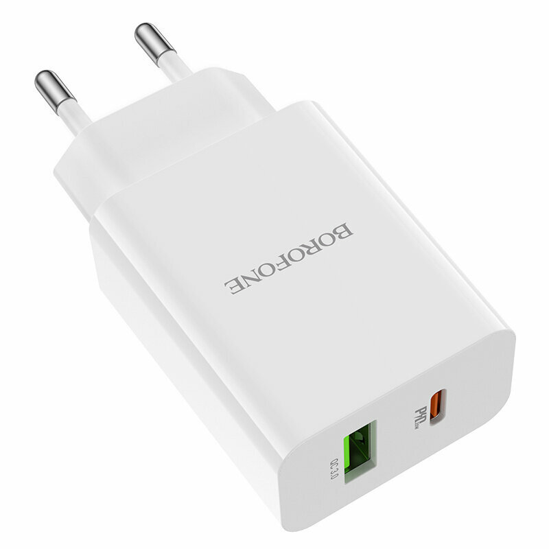 Зарядное устройство Borofone BA67A, белый (PD+QC3.0, 1xUSB, 1xUSB-C, 3A/20W)