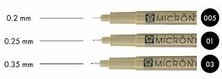 Набор линеров Pigma Micron, капиллярные ручки 3 шт. (0,2 мм., 0,25 мм., 0,35 мм.), цвет чернил: черный