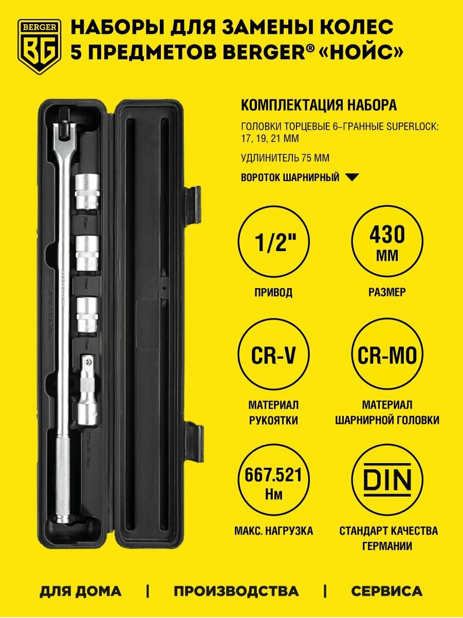 Набор инструментов для замены колес BERGER 5 предметов 1/2 «нойс» BG2154