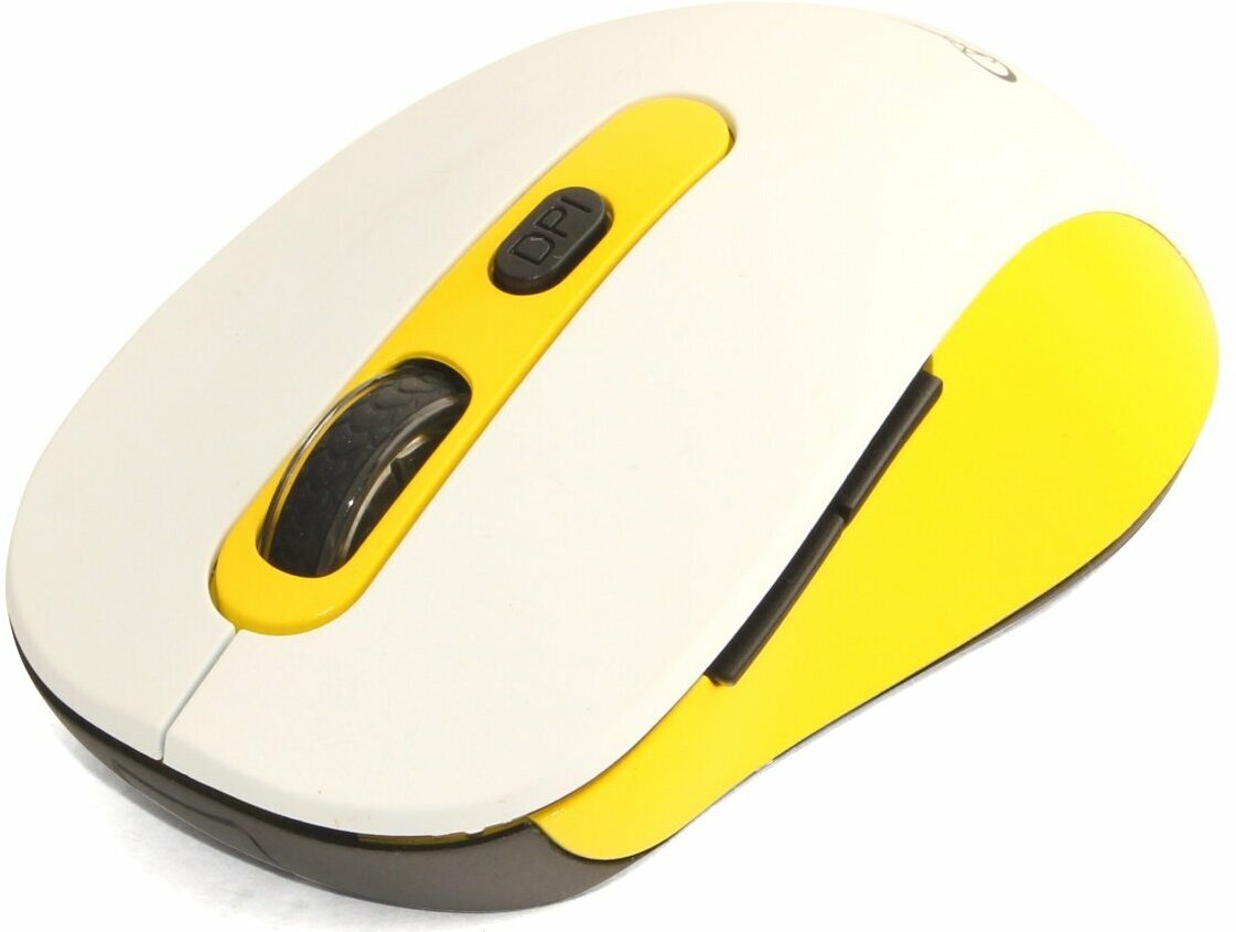 Мышь USB 727409 MUSW-221-Y, белый/желтый, 5кн.+колесо-кнопка, 800/1200/1600DPI, 2.4ГГц, [727409] MUSW-221-Y