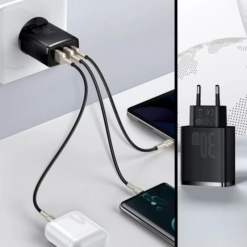 Сетевое зарядное устройство Baseus 30W 2USB + USB-C
