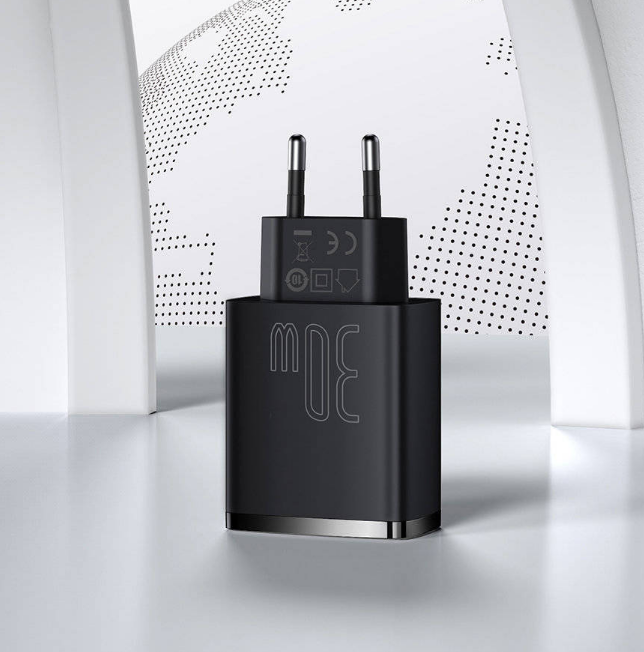 Зарядное устройство BASEUS Cube USB-C+A с функцией быстрой зарядки 30W, черный