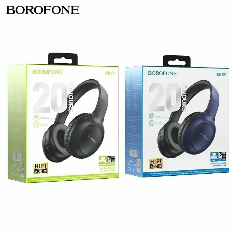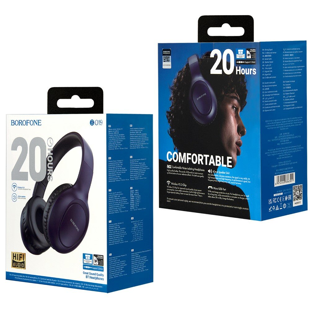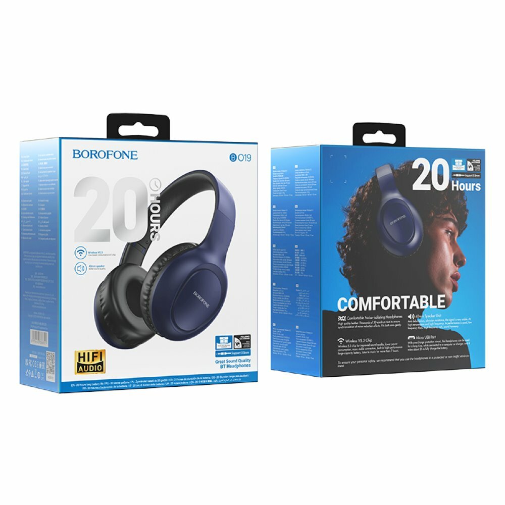 Стереонаушники Bluetooth Полноразмерные Borofone BO19 Musique BT5.3/200mAh/4ч/AUX синие