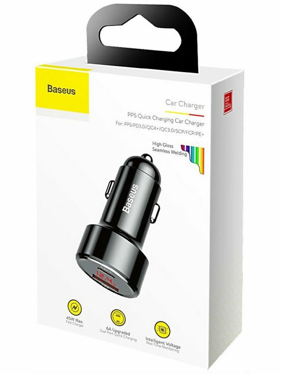 Купить Автомобильное заряд. устр. Baseus 1USB/1C 45W (CCMLC20C-01) черный перламутр
