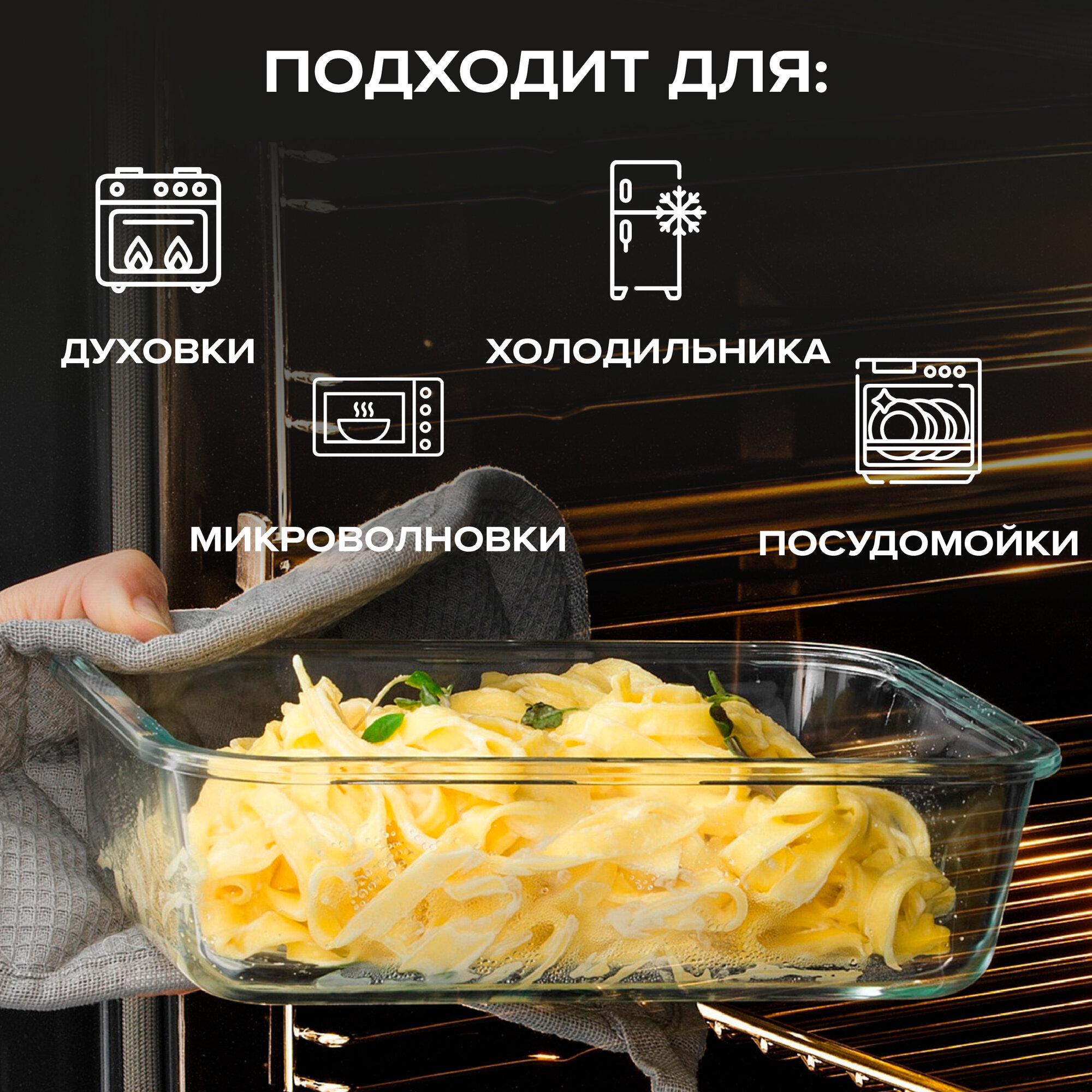 Контейнер для еды стеклянный с крышкой прямоугольный 1850 мл Good Sale