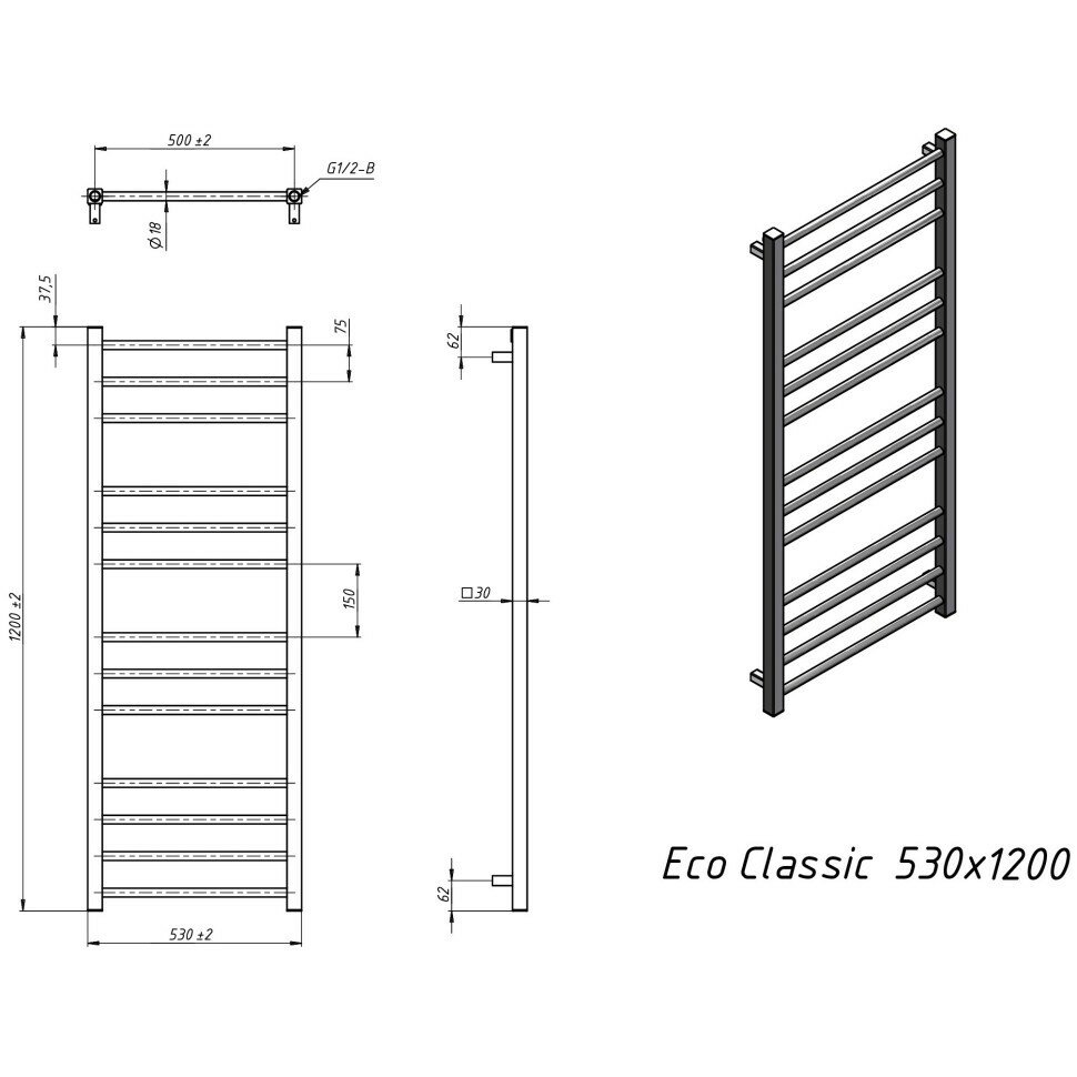 Водяной полотенцесушитель Grota Eco Classic 530x1200 с уголками интересное:
