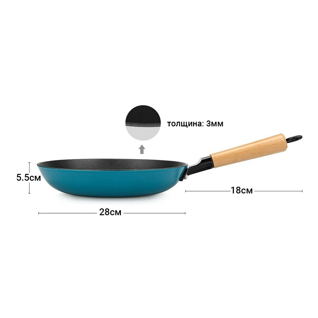 4001 FISSMAN Сковорода для жарки SEAGREEN 28x5,5см с деревянной ручкой (облегченный эмалированный чугун с антипригарным покрытием XylanPlus)