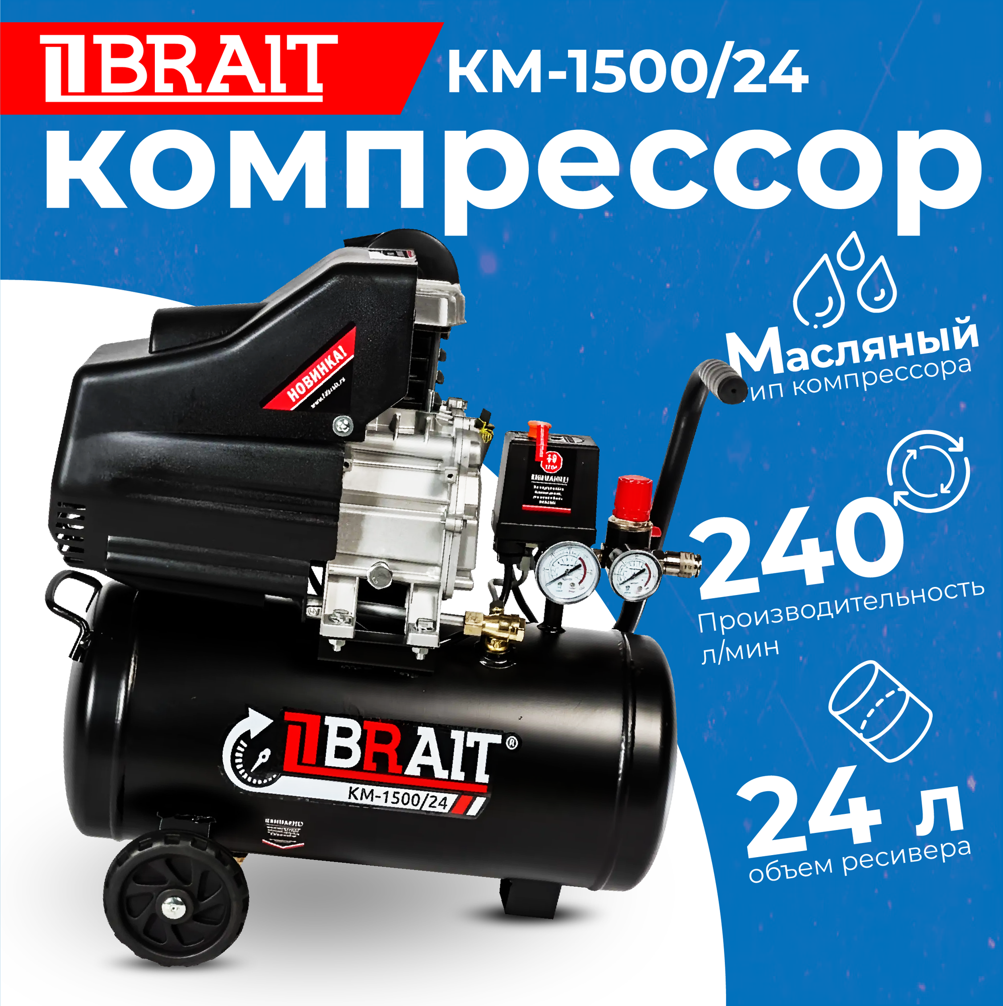 Компрессор масляный BRAIT КМ-1500/24, 24 л, 1.5 кВт