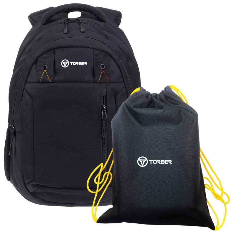 Рюкзак TORBER CLASS X, черный, 45 x 32 x 16 см + Мешок для сменной обуви в подарок!, T5220-22-BLK-M