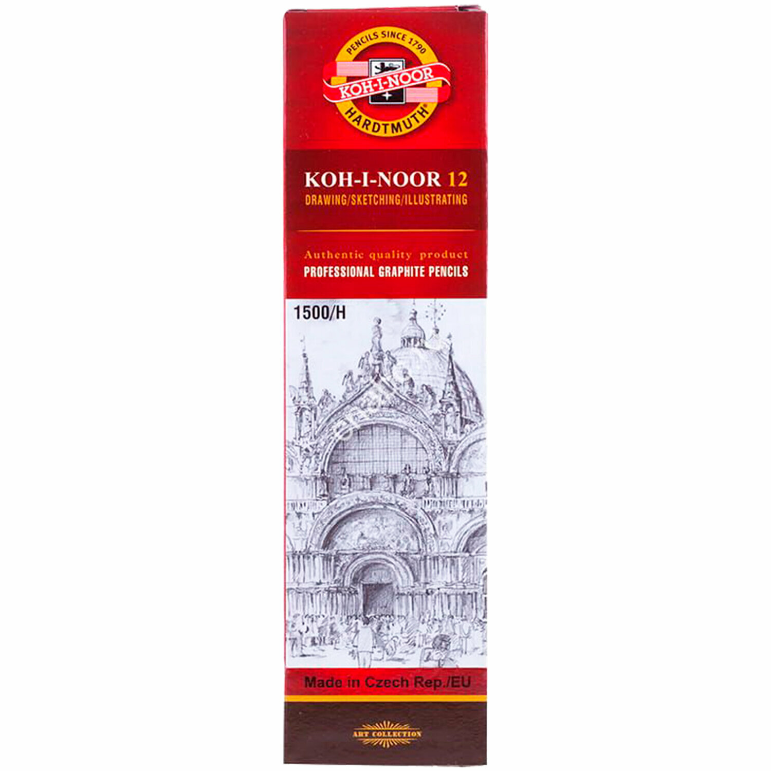 Купить Карандаш чернографитный KOH - I - NOOR 1500 .,H, без резинки, корпус желтый, заточенный, 12 шт