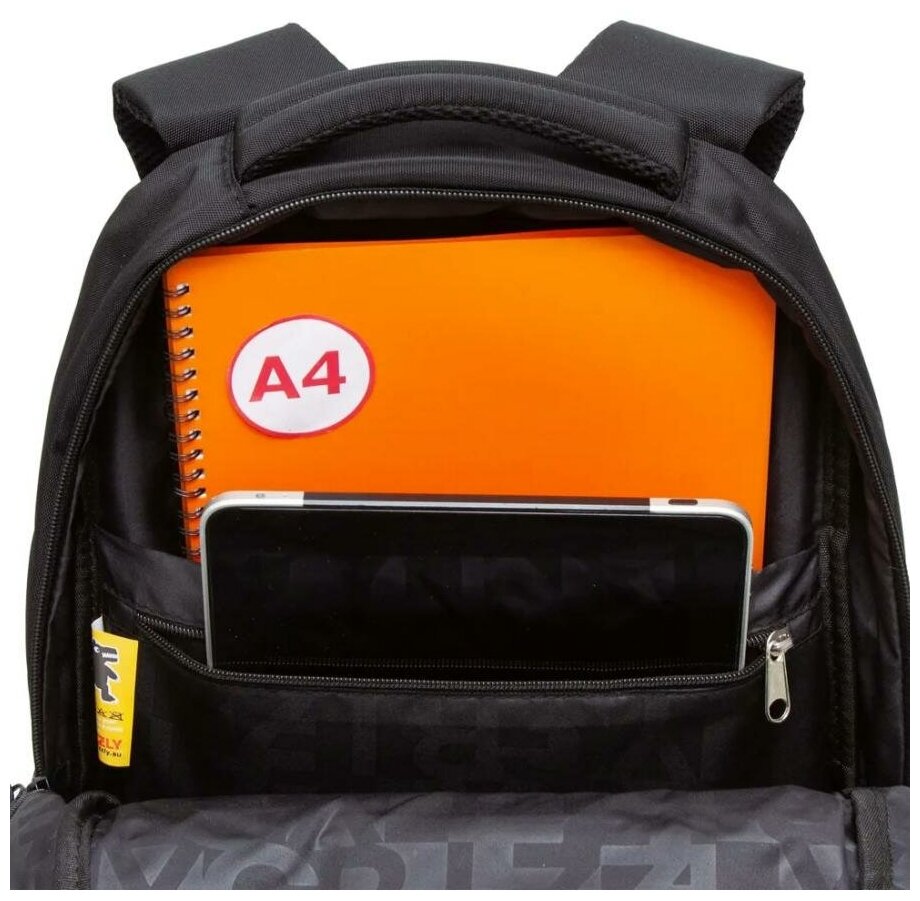 Рюкзак Grizzly "The New Generation", 32х45х23 см, 2 отделения, 4 кармана, анатомическая спинка, черно-серый (RU-330-4/3)