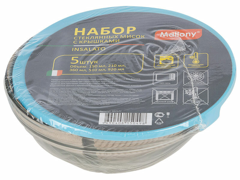 Миска (салатник) INSALATO с крышкой 150/210/360/510/920мл, набор 5шт/уп, стекло, 7177 Mallony (арт. 769530)