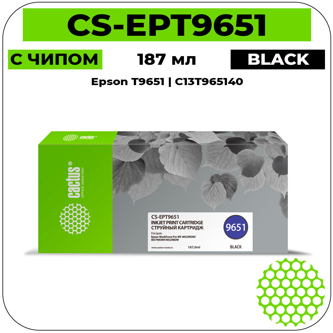 Cactus Картридж струйный Cactus CS-EPT9651 T9651 черный (187мл) для Epson WorkForce Pro WF-M5299DW/M5799DWF