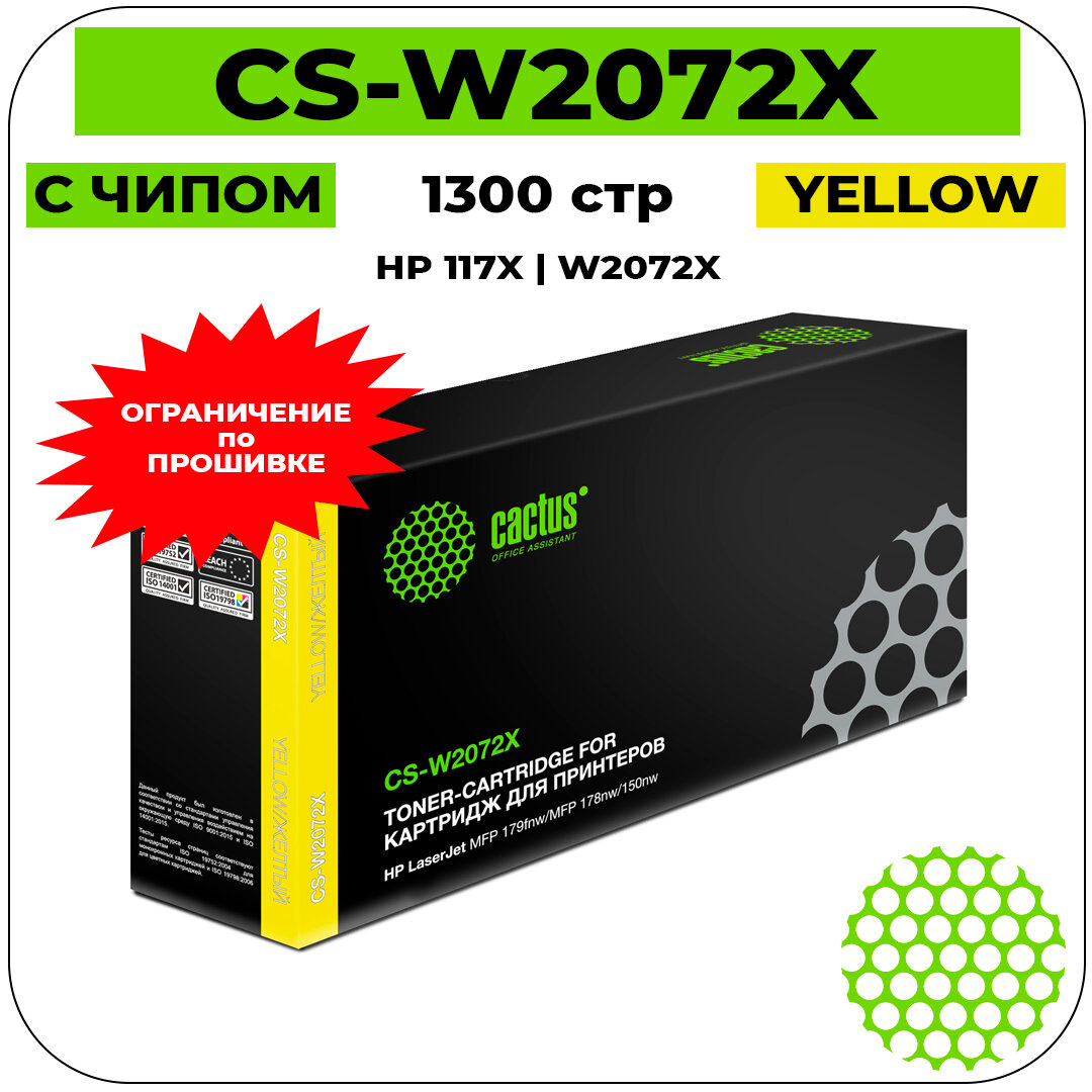 Картридж лазерный CACTUS (CSP-W2072X) для HP Color Laser 150a/150nw/178nw, желтый, ресурс 1300 страниц