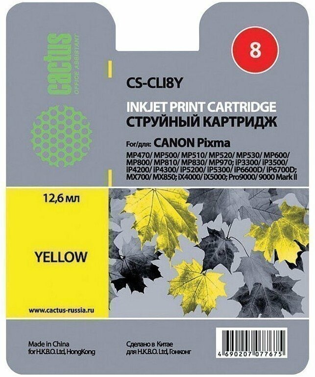 Картридж Cactus Cs-cli8y 12ML Yellow Pixma Mp470/mp500/mp510/mp520/mp530/mp600/ .