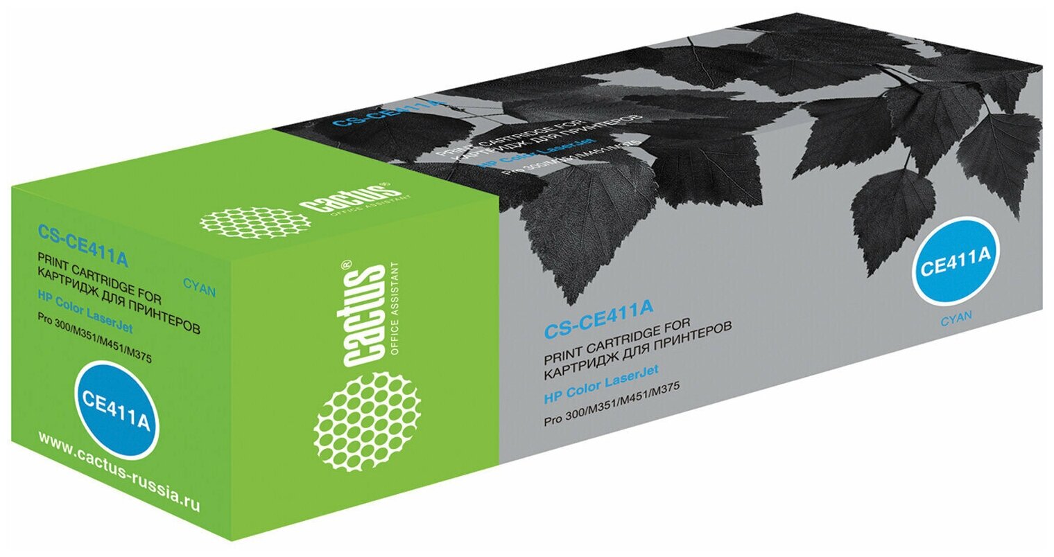 Картридж лазерный CACTUS (CS-CE411A) для HP LaserJet Pro M351/M451, голубой, ресурс 2600 страниц - 1 шт.