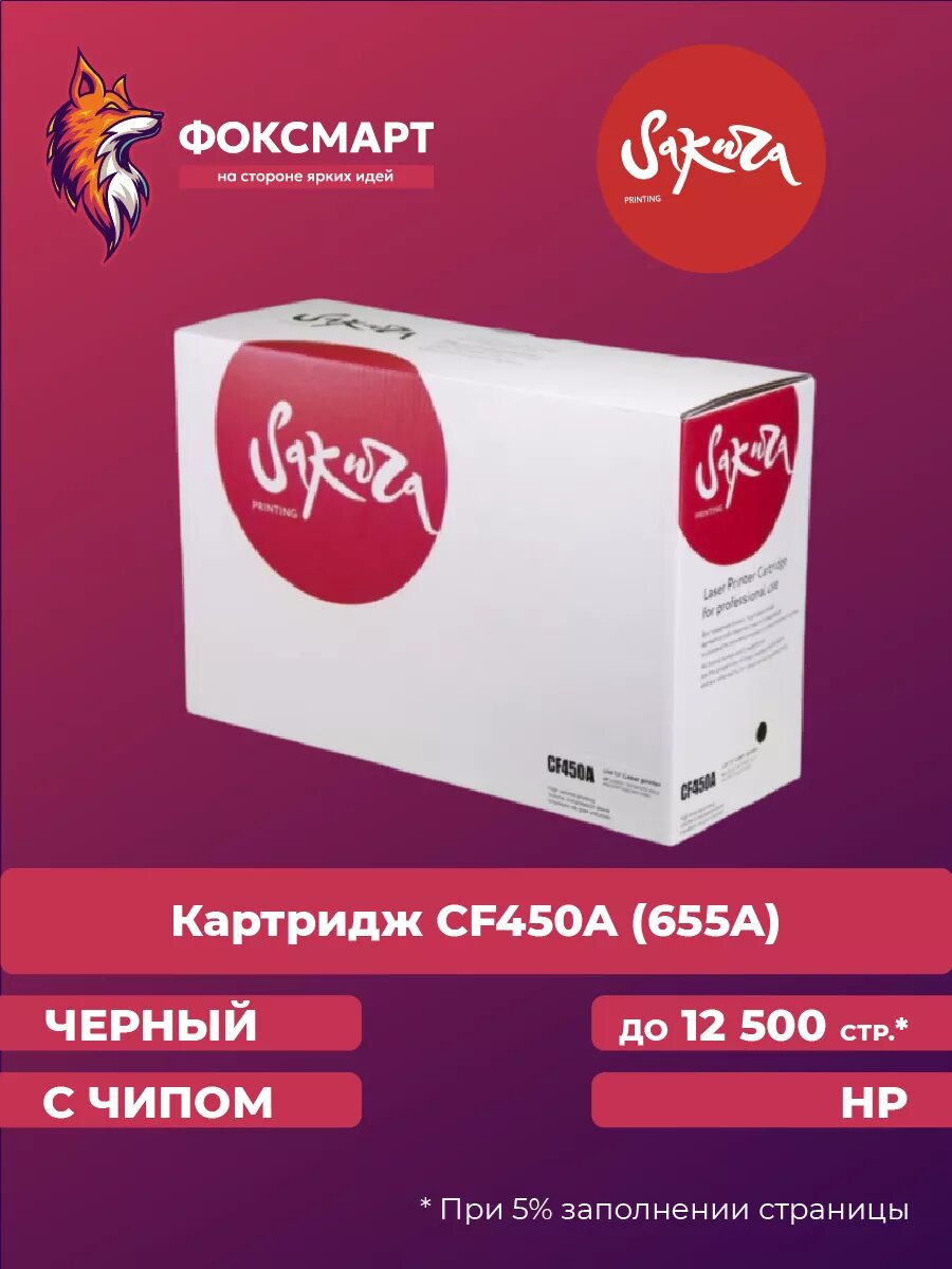 Картридж SAKURA CF450A (655A) черный для HP Color LaserJet M652/M653 MFP M681dn/M682z (12.5K) (SACF450A)