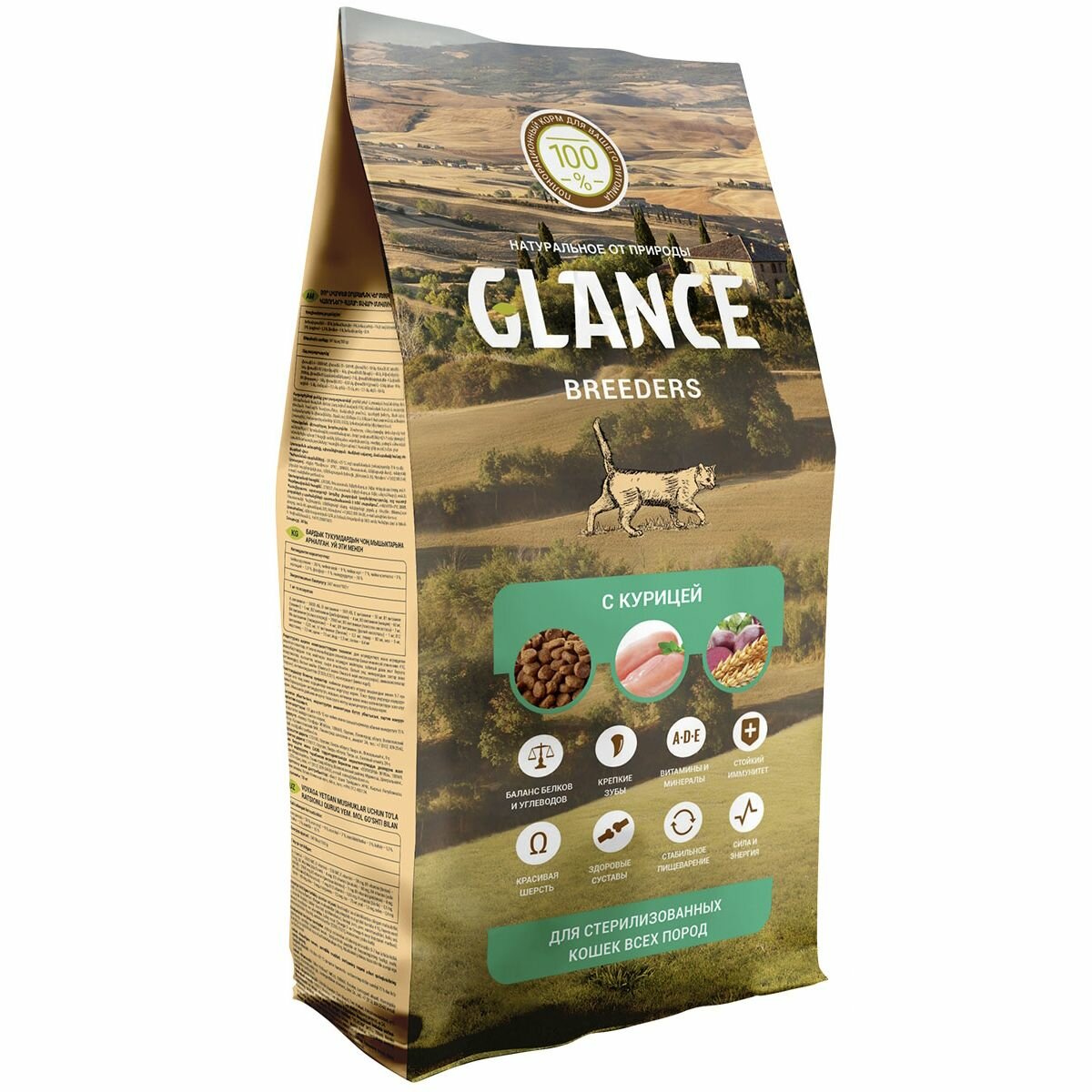 Glance, корм сухой для взрослых стерилизованных кошек с курицей, 10 кг, (1 шт)