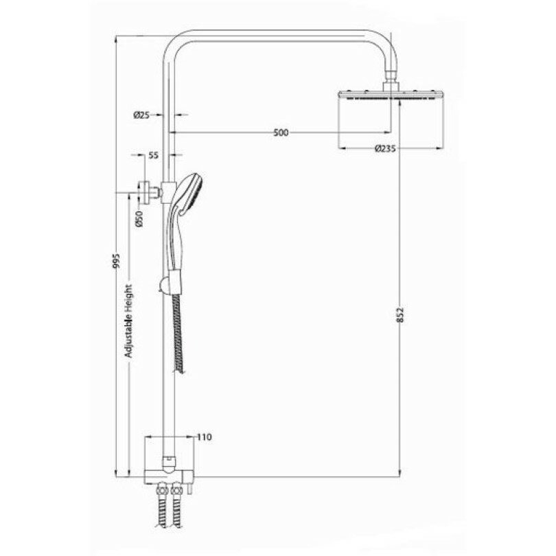 | Дополнительная информация | высота стойки для душа: 995 мм; диаметр душевой лейки: 110 мм; диаметр верхнего душа: 250 мм |
