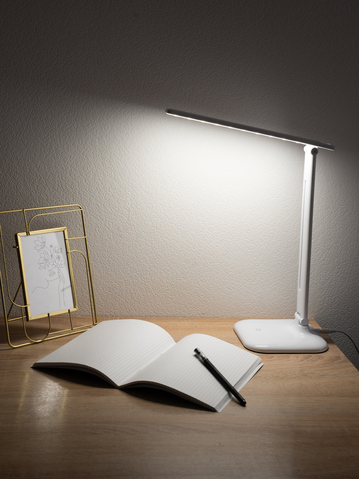 | Плюсы: | Лучшая настольная лампа. Свет белый, приятный. 3 уровня подсветки. Рекомендую. |