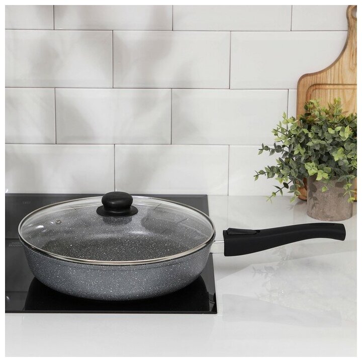 Сковорода Доляна "Марбл", d 28 см, стеклянная крышка, съёмная ручка, антипригарное покрытие, цвет серый интересное: