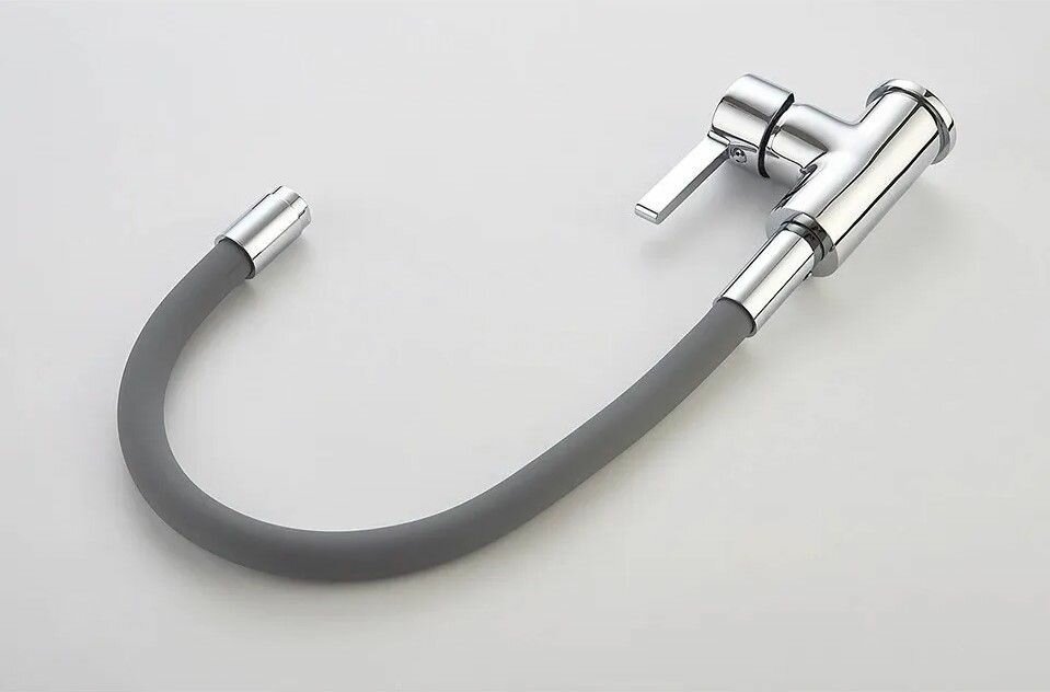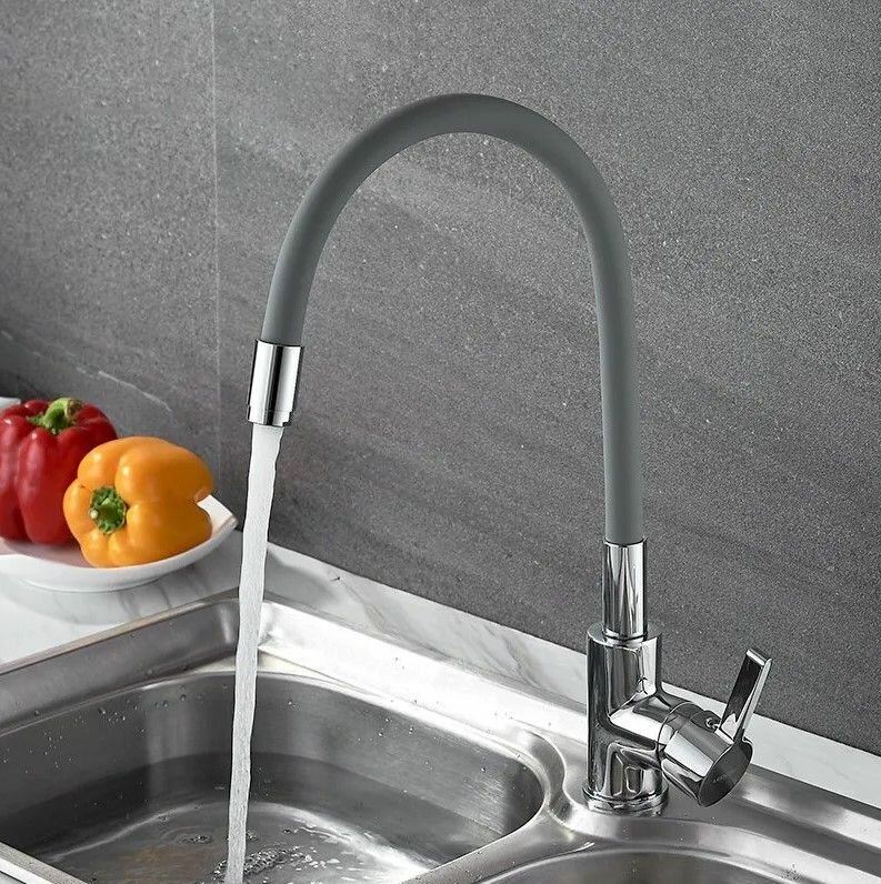 Смеситель для кухни с силиконовым изливом Серый/Хром Латунь Accoona A9890T