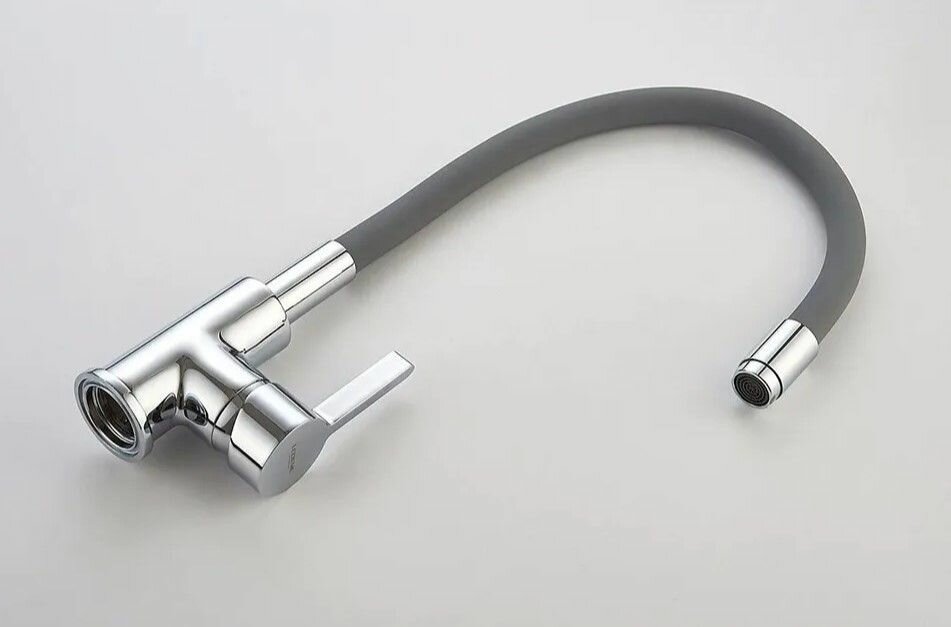Accoona Смеситель для кухни Accoona A9890T, однорычажный, с силиконовым изливом, серый/хром