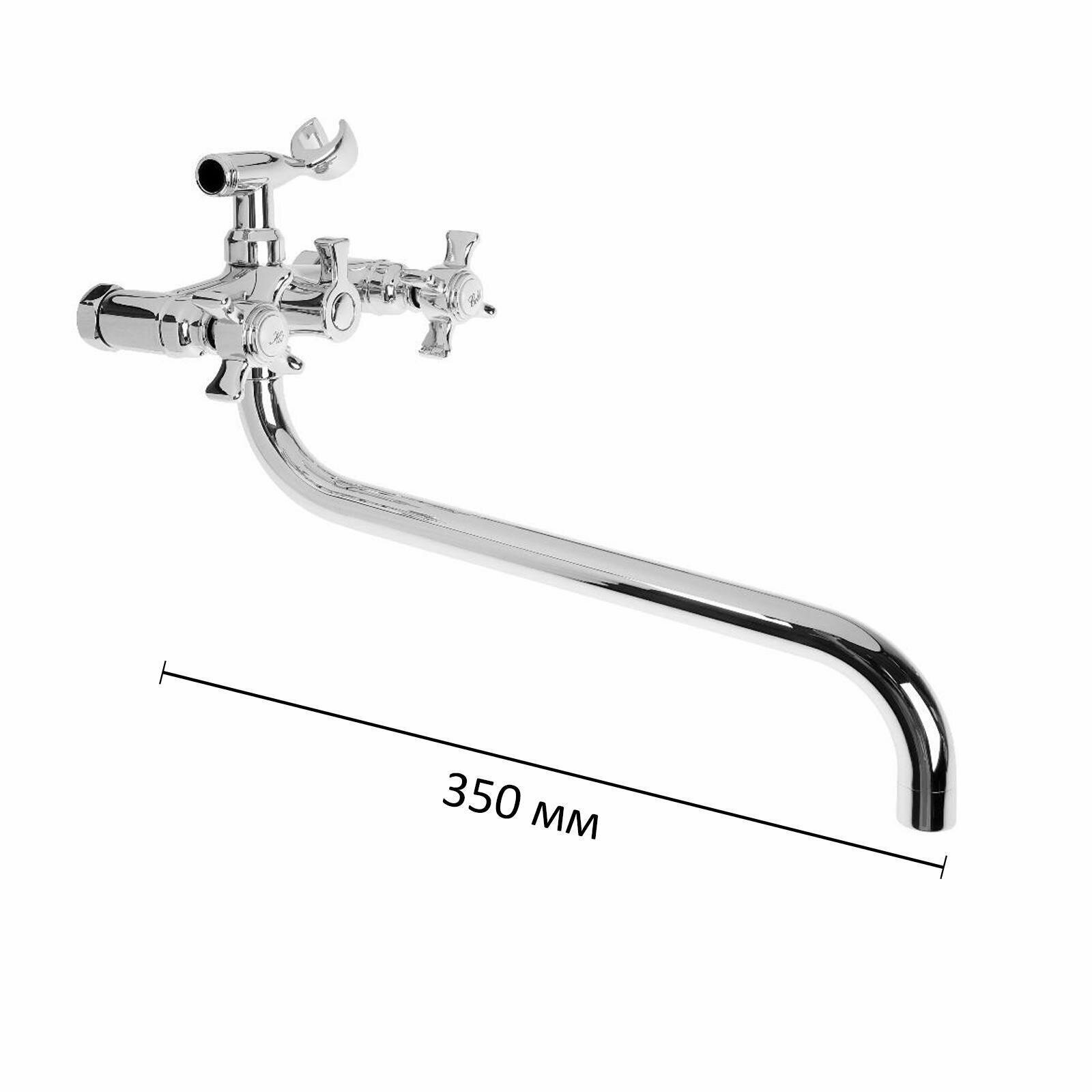 Смеситель ванна 35 см крест Силумин Хром Accoona A7170
