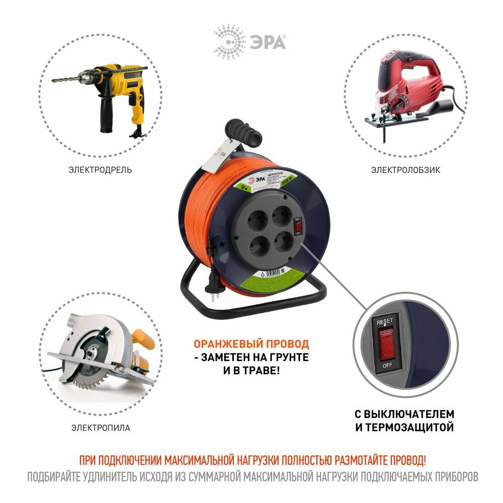 Удлинитель строительный силовой Эра RPx-4es-3х0.75-30m на катушке с заземлением и выключателем 30 метров 4 розетки 6А