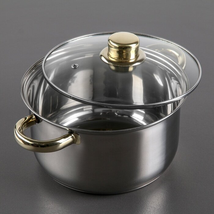 Кастрюля из нержавеющей стали "Роскошь", 2.2 л, d=19 см, стеклянная крышка