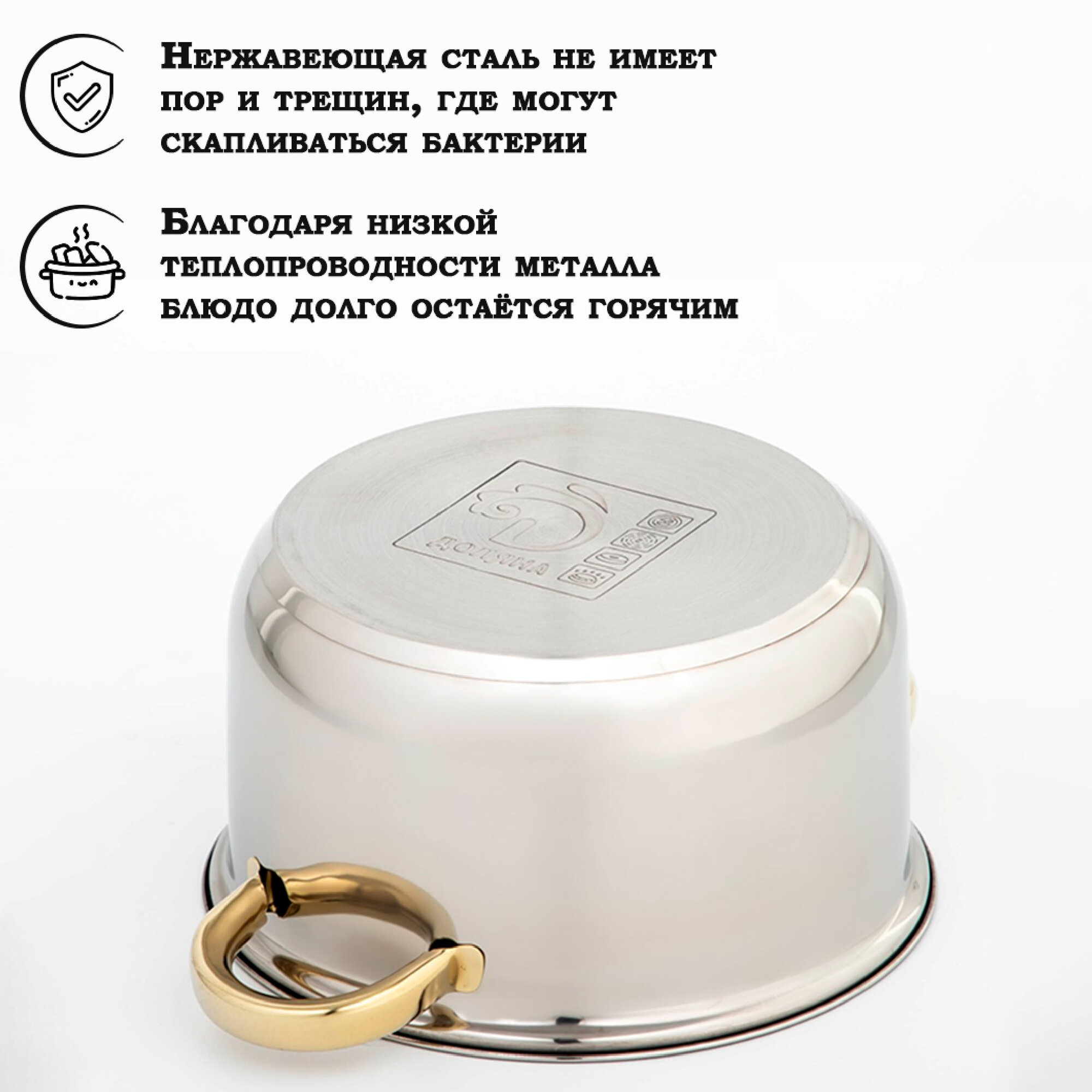 Кастрюля из нержавеющей стали Грейт, 3,6 л, капсульное дно, индукция Доляна 9929588 .