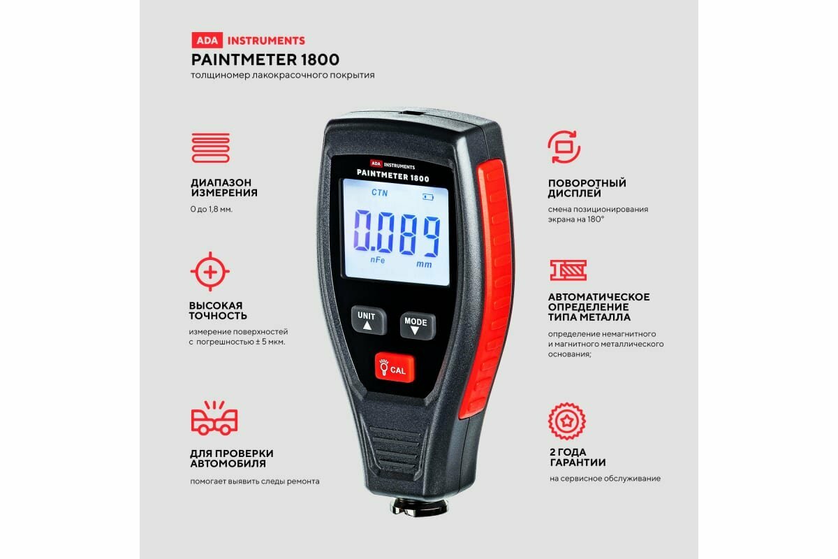 Толщиномер ADA PaintMeter 1800 А00656 интересное: