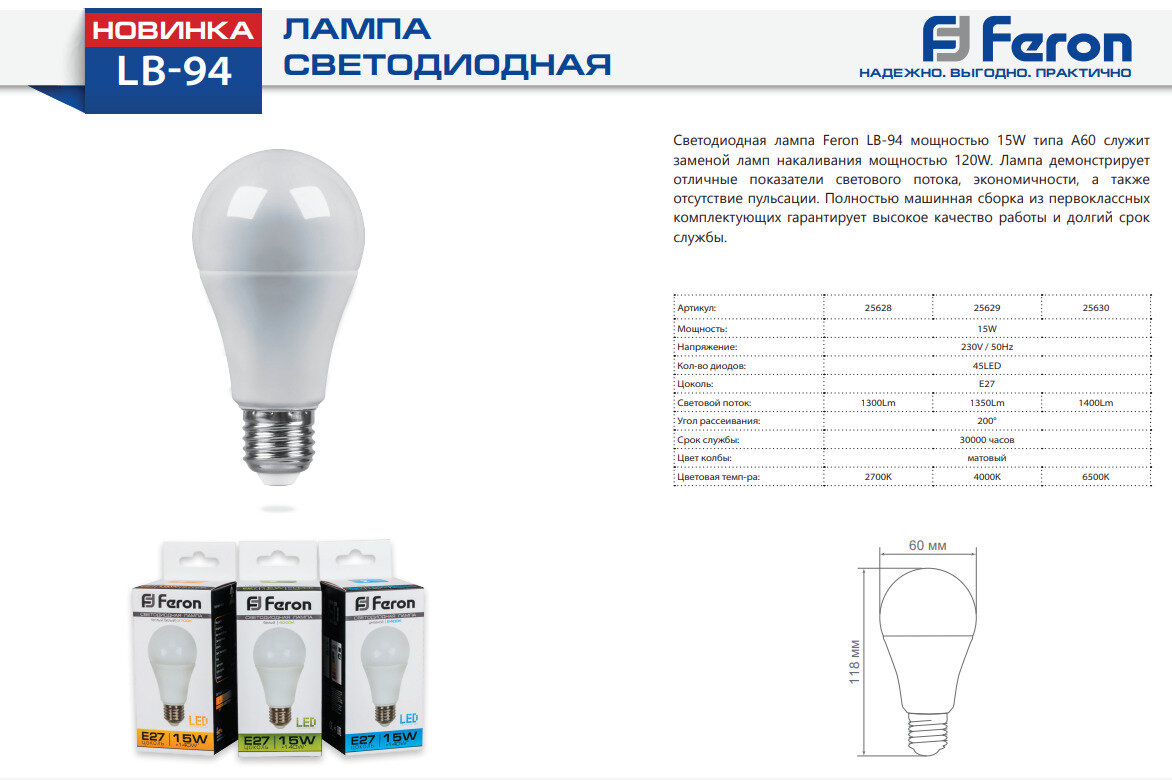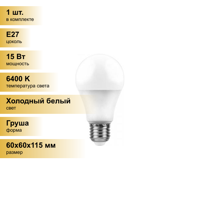 Feron LB-94 25630, A60, 15 Вт, 6400 К