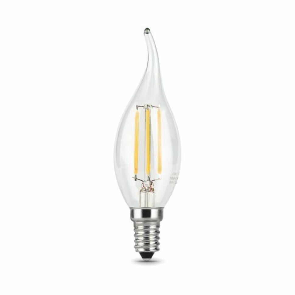 (15 шт.) Светодиодная лампочка Gauss Filament Свеча на ветру E14 5W(450lm) 4100K 4K 122x35 филамент (нитевидная), прозр. 104801205 Нейтральный белый. Цоколь E14