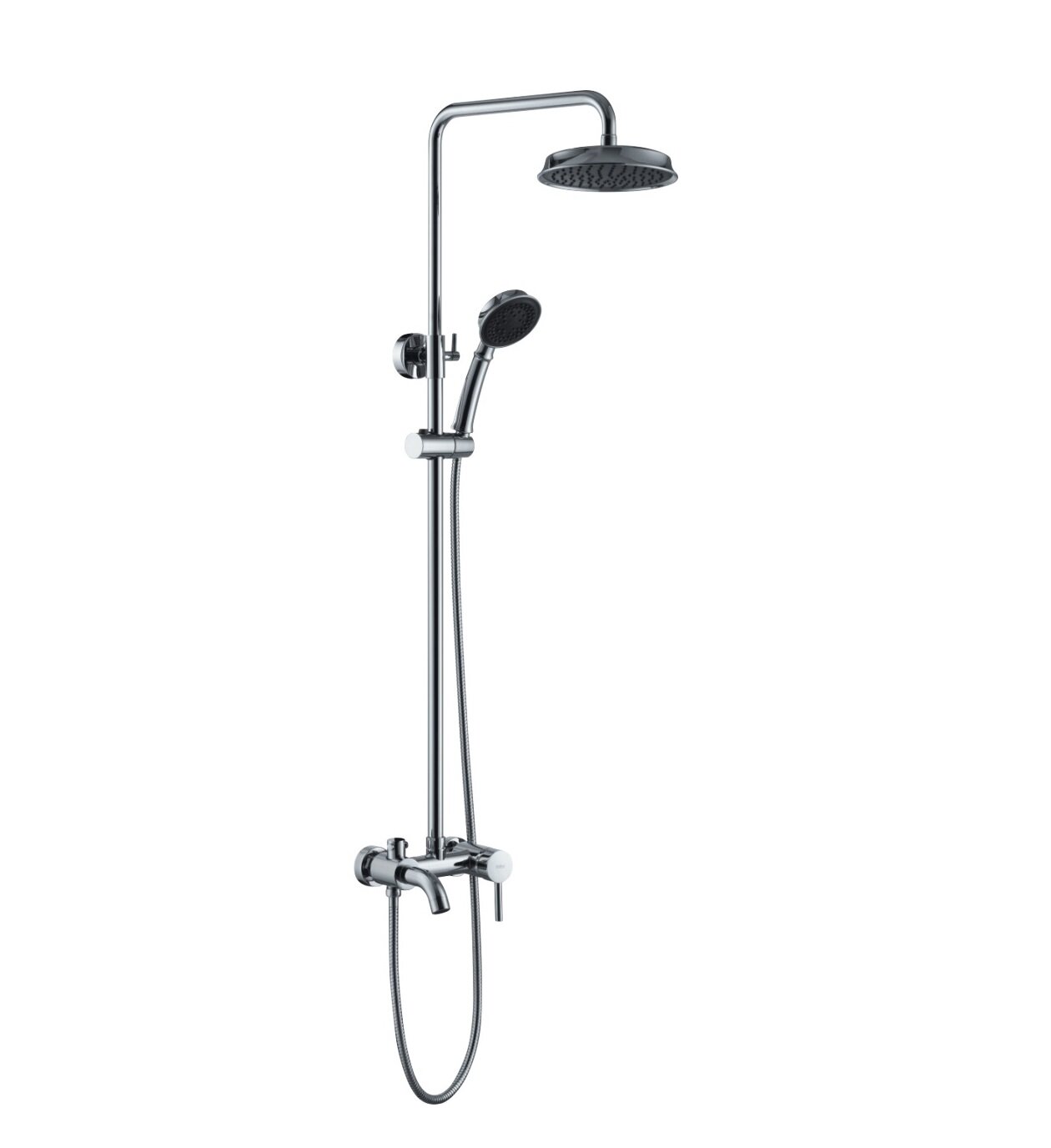 | Комплектация | Смеситель / душевая стойка / верхний душ / кронштейн для верхнего душа / держатель лейки / душевая лейка / душевой шланг / крепления / отражатели / эксцентрики. |