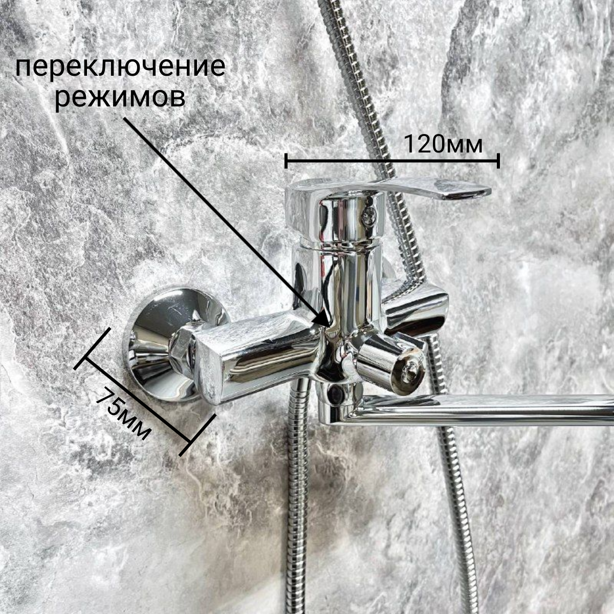 Смеситель для ванны Haiba HB2270 с длинным изливом и переключателем в корпусе, хром