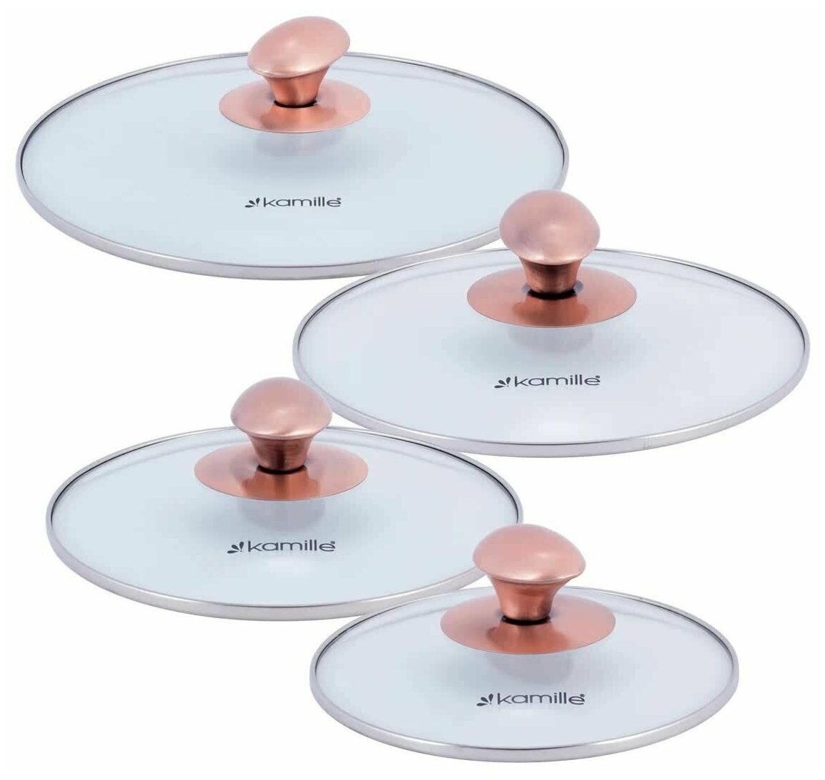 Набор из 4-х кастрюль Kamille 1.5 л, 2 л, 3 л, 5 л из нержавеющей стали с крышкой и медными ручками