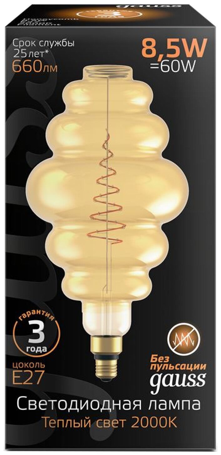 Лампа светодиодная филаментная Gauss E27 8,5W 2000K янтарная 161802105