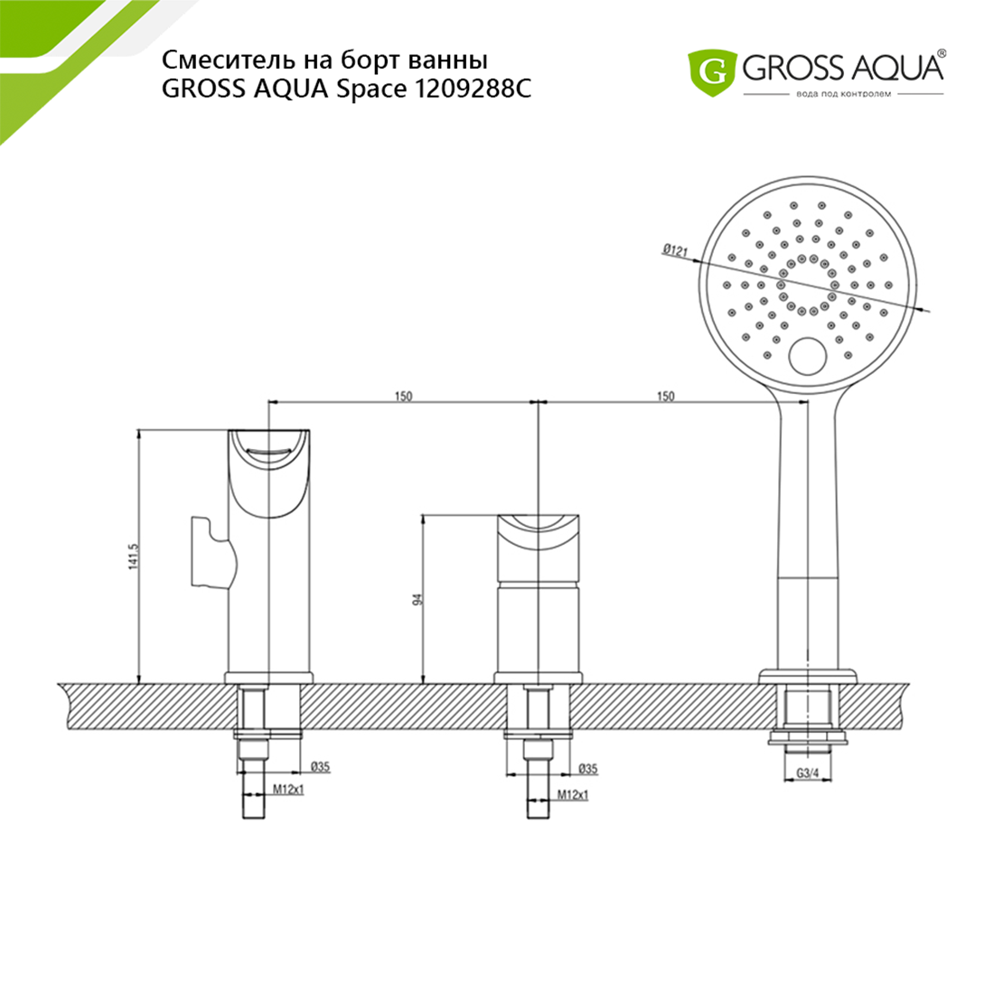 Смеситель на борт ванны встраиваемый, GROSS AQUA Space, латунь, хром 1209288C. интересное: