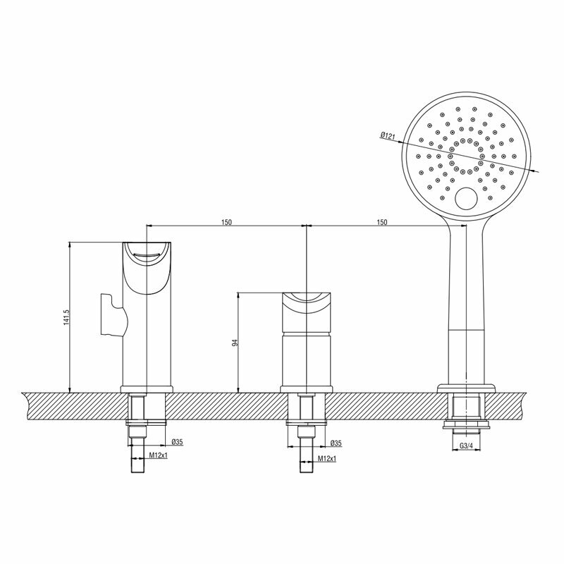 Смеситель Gross Aqua на борт ванны на 3 отверстия Space