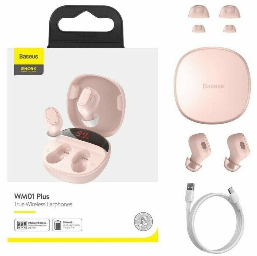 Беспроводные наушники Baseus WM01 Plus, USB Type-C, pink