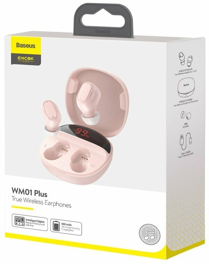Беспроводные наушники BASEUS Encok WM01 Plus, Bluetooth, 40 мАч, розовый NGWM01P-04