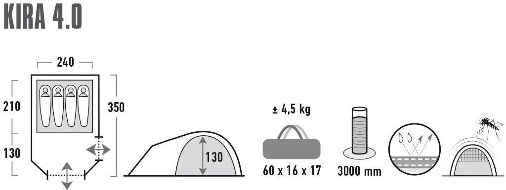 Трекинговая палатка High Peak Kira 4.0, 10373
