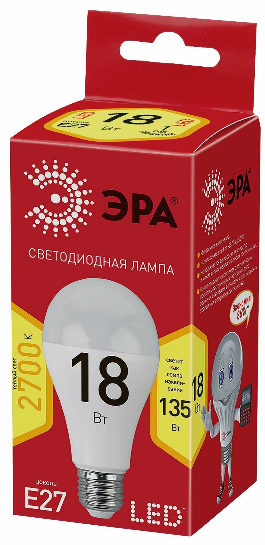 ЭРА LED A65-18W-827-E27 R (диод, груша, 18Вт, тепл, E27) (10/100/1200) интересное: