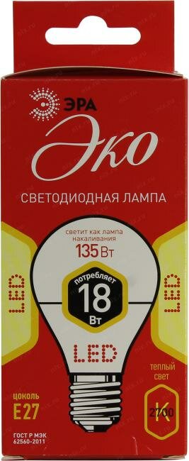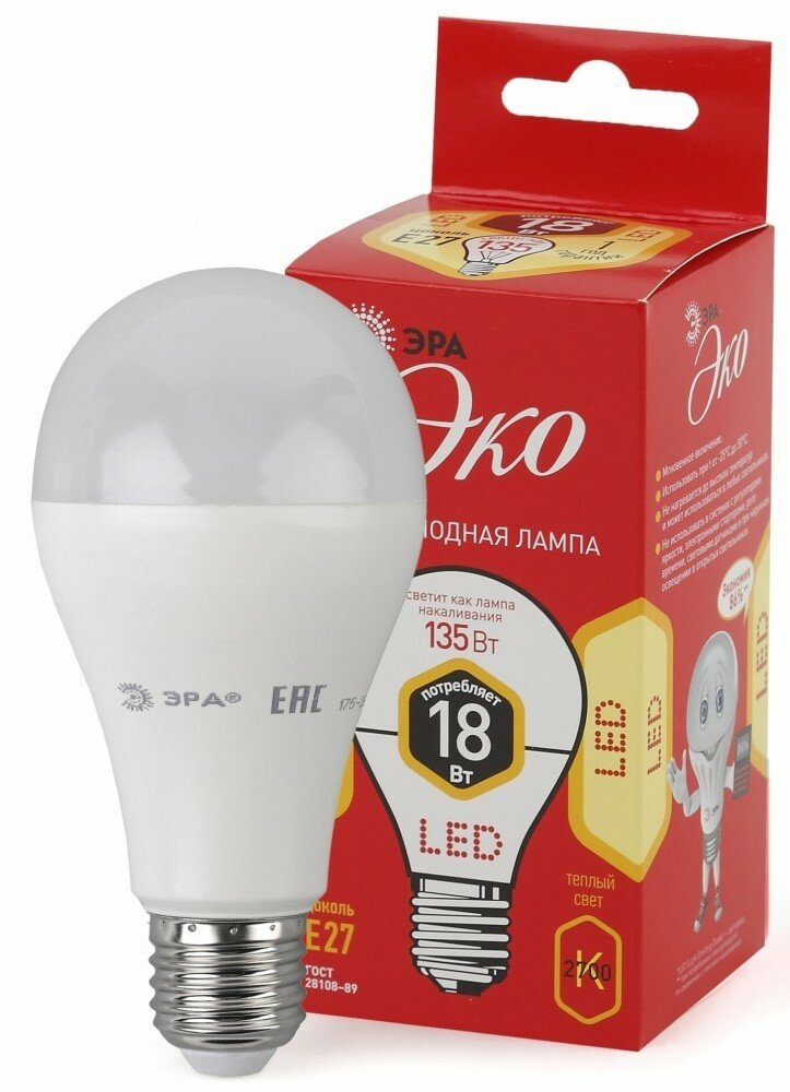 ECO LED A65-18W-827-E27 (диод, груша, 18Вт, тепл, E27), ЭРА Б0031706 (1 шт.)