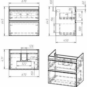 Тумба Dreja Grace Plus 70, 99.0905, подвесная/напольная, 2 ящика, с опорами, белый глянец