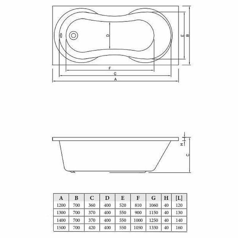 Ванна RAVAK Classic 120x70 акрил