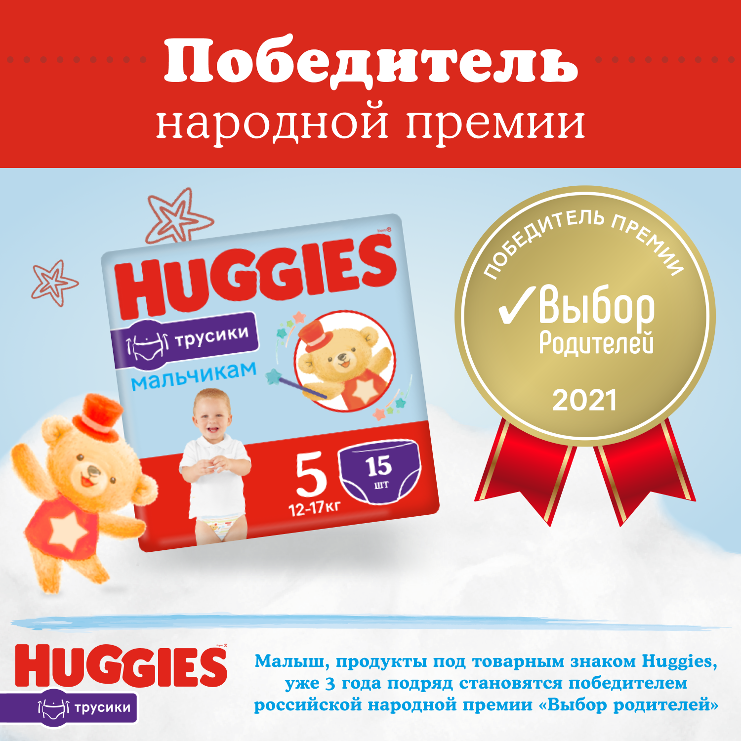 Подгузники трусики Huggies для мальчиков 12-17кг, 5 размер, 48шт